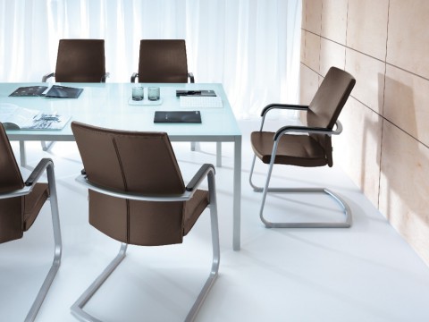 Active is a system of managerial armchairs. Elegant line of seat and backrest, together with appropriately selected armrests, give this model an image of a luxury armchair. Stable, large seat combined with ergonomically contoured backrest, upholstered with perforated leather make it very comfortable to seat in, even for a long time.
