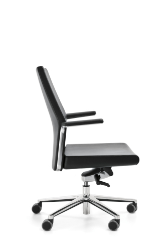 Fotele MyTurn to najwyższy poziom elegancji i stylu. Precyzyjne wykończenia skórzane połączone z elementami aluminiowymi nadają kolekcji cech produktu premium. Wersja obrotowa znakomicie uzupełni wystrój gabinetu prezesa, a wersja konferencyjna będzie idealnym wyposażeniem sal spotkań o wysokim standardzie. Wyróżniającym elementem są aluminiowe podłokietniki, które harmonijnie łączą się z oparciem, a intuicyjny i nieskomplikowany mechanizm ‘Rocker’ znacznie podnosi komfort siedzenia podczas wielogodzinnych spotkań.