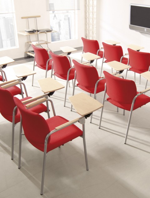 Możliwość sztaplowania, łączenia krzeseł w rzędy oraz zamontowani pulpitów to walory użytkowe, które zaspokoją wymagania każdego klienta