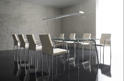 Przestrzeń sal konferencyjnych doskonale uzupełniają krzesła konferencyjne na nogach i płozach oraz na konstrukcji obrotowej wyposażonej w mechanizm pamięci obrotu.