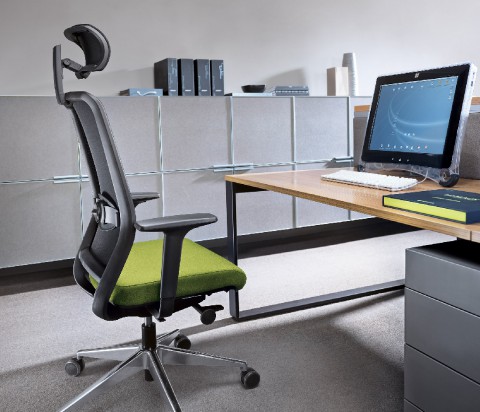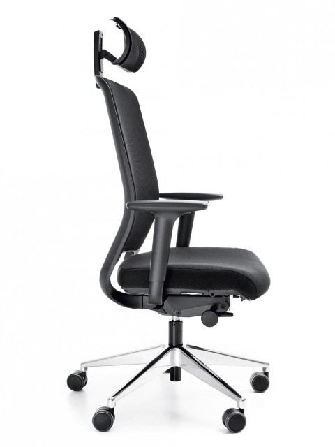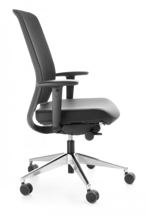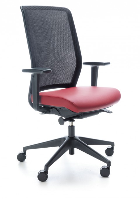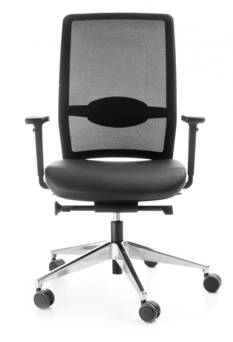 Nowoczesny i w pełni ergonomiczny fotel biurowy. Charakterystycznymi elementami tego modelu jest siatkowe oparcie wraz z podparciem lędźwiowym, siatkowy zagłówek oraz nowoczesny mechanizm Synchro z funkcjami dodatkowymi typu: sanki, pochylenie siedziska/oparcia, pochylenie przedniej części siedziska.
